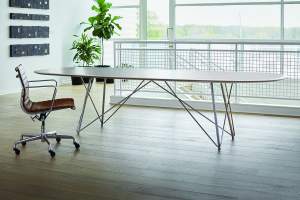 Baja | Conference Table | Custom Veneer Top | Polished Chrome Wire Frame Base | Soft Rectangle, Surf Edge | Nucraft Headquarters