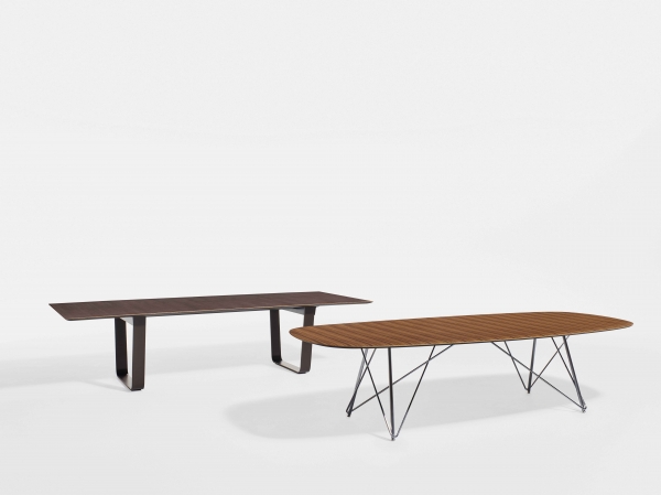 Baja | Conference Table | Soft Rectangle Paldao Veneer Top | Polished Chrome Wire Frame Base Baja | Conference Table | M07 Bramble Oak Veneer Top | Aged Bronze Powdercoat Hoop Base