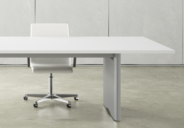Flow | Conference Table | Rectangle Bright White Laminate Top | Foil Powdercoat Panel Base