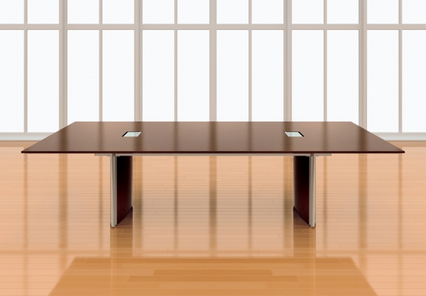 Saber | Conference Table | Rectangle G25 Natural Walnut Veneer | Panel Base | Power Matrix | Side View