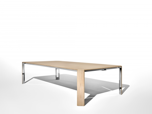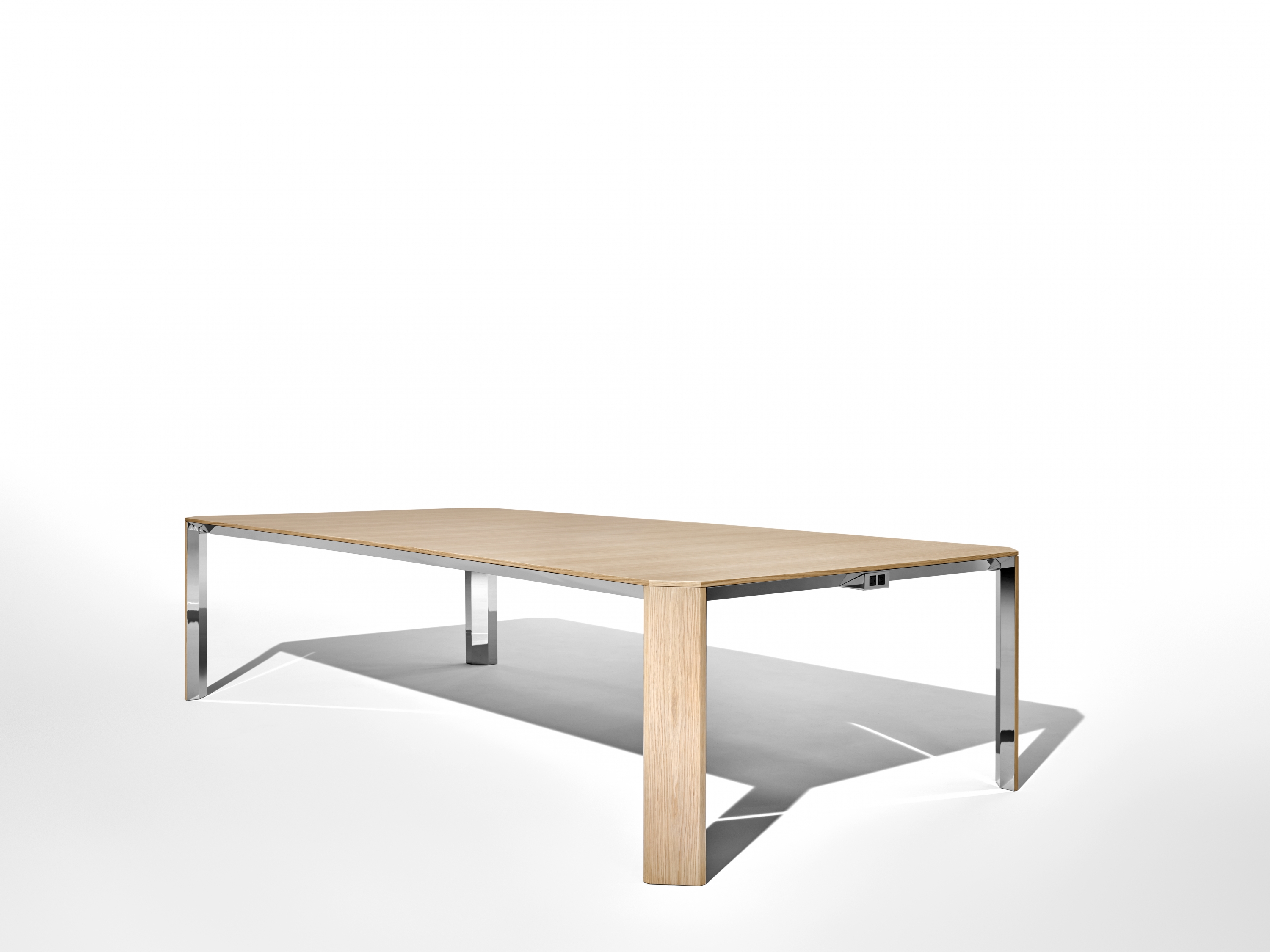 Tova | Conference Table | Dune Veneer | Polished Chrome Underside | Angled View